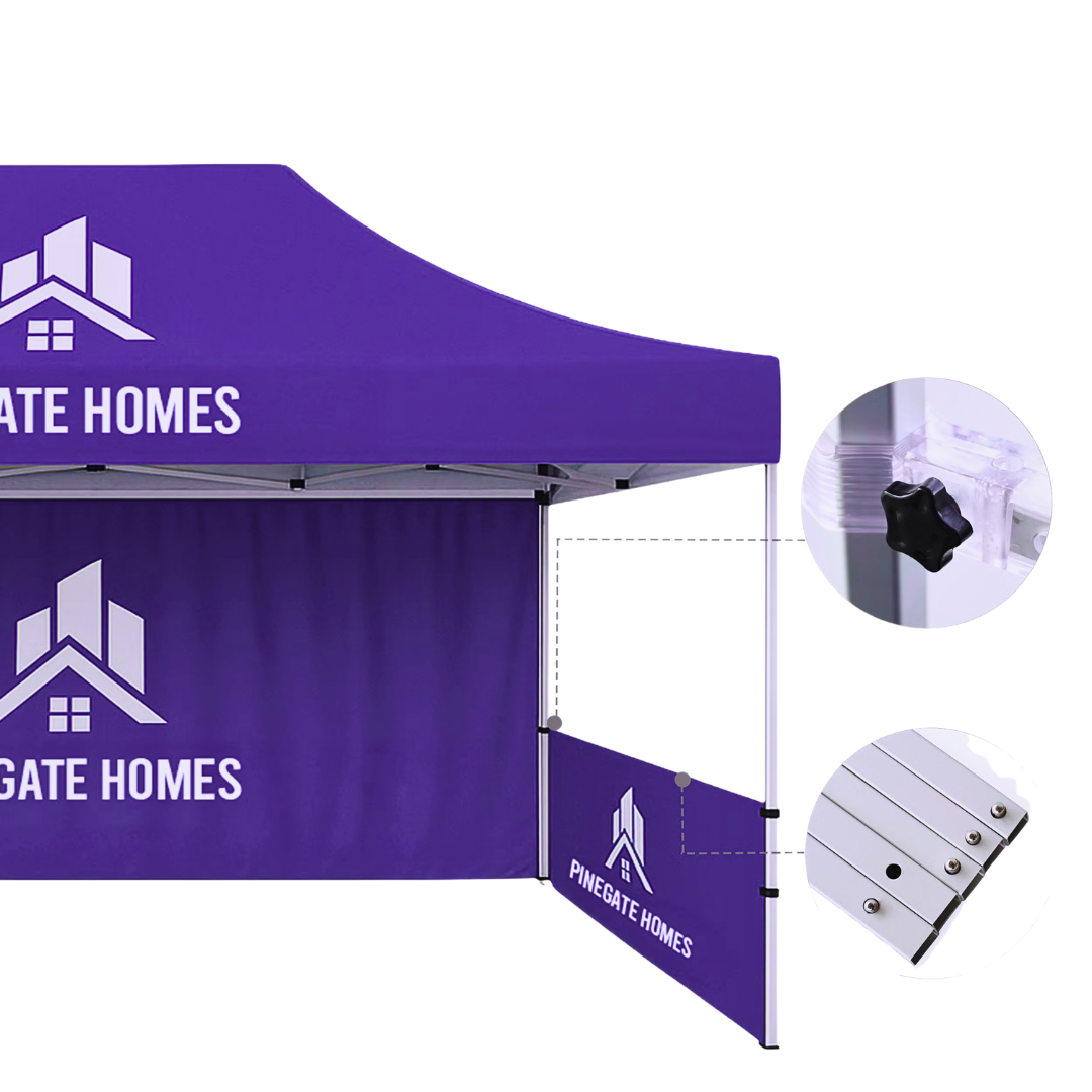 With more canopy surface and optional printed walls, your brand becomes visible from multiple angles—even from afar.