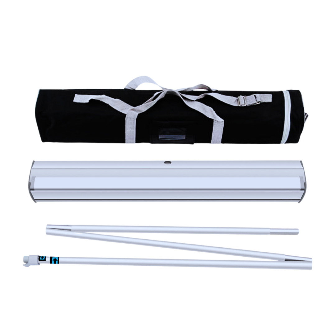 One of the most popular solutions for events, telescopic stands feature adjustable horizontal and vertical poles, making them flexible for various banner sizes. Perfect for step and repeat banners or branded event backdrops, telescopic stands offer: